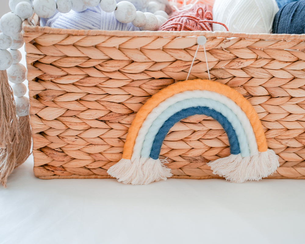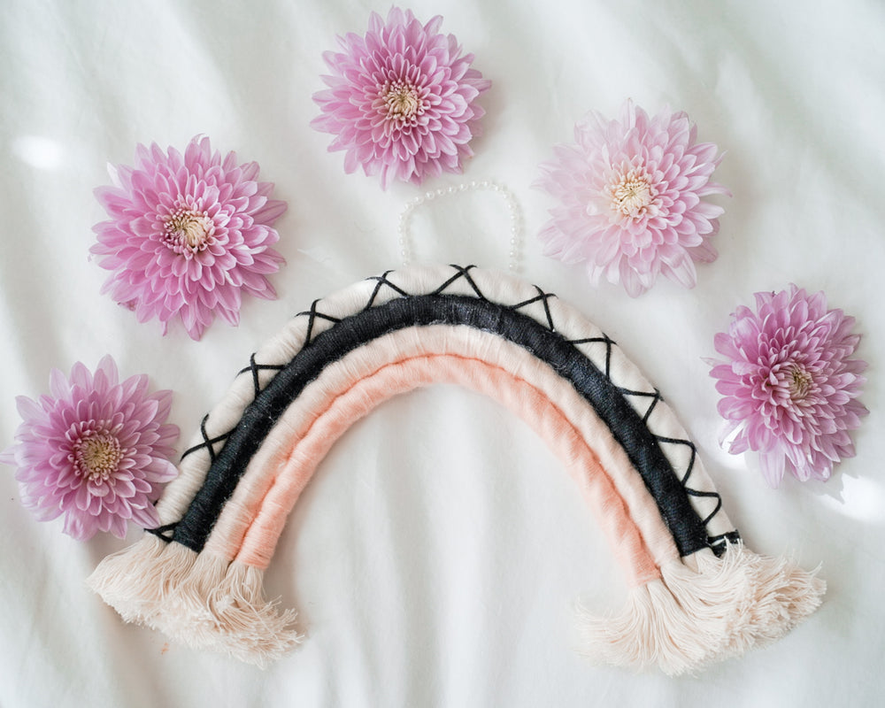 All of our rainbows is handcrafted by hand, therefore, each product is very unique. The approximate height is 6 inches and made with yarn, cotton, and acrylic. A ribbon attached to the backside makes it ready to hang.